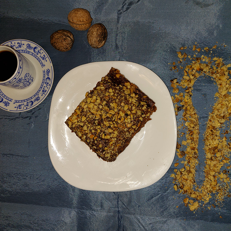 PRĂJITURĂ CU CACAO, GEM, DE PRUNE ȘI NUCI (de post)