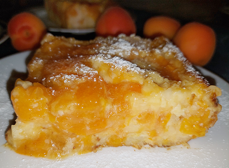 • Separat, se călesc 700 g caise (tăiate cubulețe) cu 3 linguri zahăr brun, 2 linguri zahăr vanilat, se lasă pe foc aproximativ 5-6 min., cât să se înmoaie puțin, după care, se adaugă 1 lingură de amidon dizolvat în puțină apă, se amestecă și se iau de pe foc.