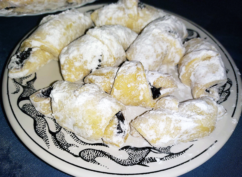 - Cornulețele fierbinți se tăvălesc prin zahăr pudră vanilat. Sunt grozave! Poftă bună!